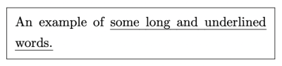 \underline 命令生成下划线的样式比较机械,不同的单词可能生成高低各异的下划线,并且无法换行。 ulem 宏包解决了这一问题,它提供的 \uline 命令能够轻松生成自动换行的下划线: