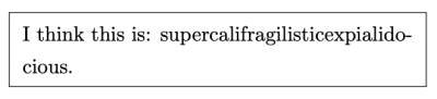 如果 LaTeX 遇到了很长的英语单词,仅在单词之间的位置断行无法生成宽度均匀的行时,就要考虑从单词中间断开。对于绝大部分单词,LaTeX 能够找到合适的断词位置,在断开的行尾加上字符-。